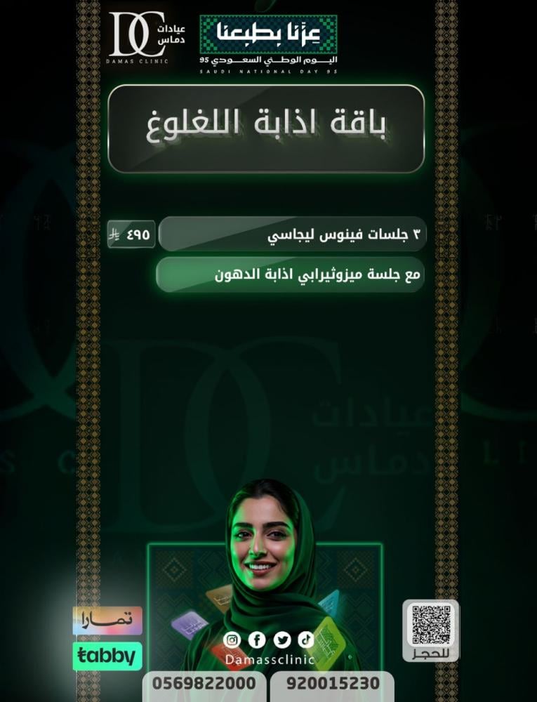 عروض اليوم الوطني _ عروض جلسات اذابة اللغلوغ بجهاز الليجاسي فينوس مع الميزو ثيرابي